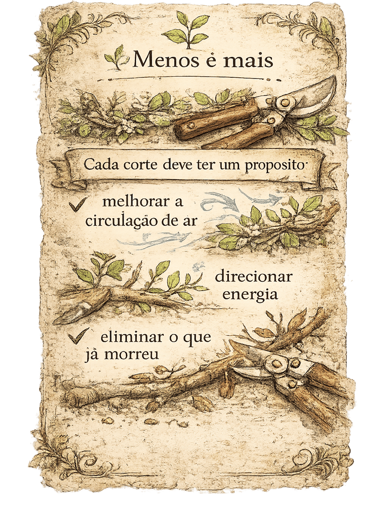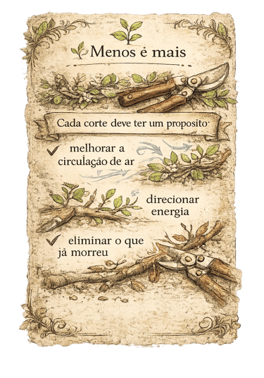 Quem aprende a podar deixa de “cuidar” da planta e passa a dialogar com ela.